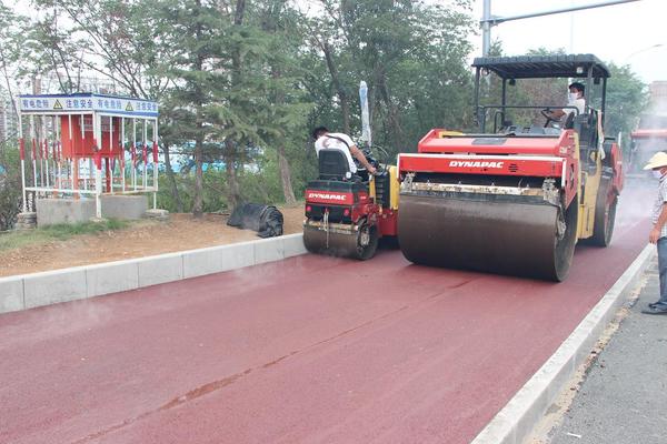 7月11日下午,攤鋪項目部對旅游路工程涵玉翠嶺段北半幅慢車道進行了彩色瀝青的攤鋪施工,本次攤鋪施工在全體項目部人員的團結協作下,歷時3小時順利完成。施工過程中質檢人員嚴格監測平整度和壓實度等質量問題,全程質檢跟蹤監測,嚴把質量關。攤鋪過程中,施工人員根據彩色瀝青的施工要求,特別注意施工過程的策劃和清潔控制,從出料、運輸、現場施工中的清潔處理都做了詳細的安排和要求,攪拌站工作人員和現場施工人員緊密協作,圓滿完成了該段彩色瀝青的攤鋪施工。彩色的路面與旅游路周圍的青山綠水相映成趣,仿佛一條彩帶貫穿于青蔥之間,成為一道亮麗的風景。